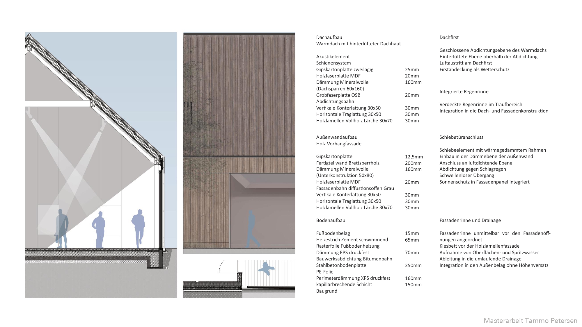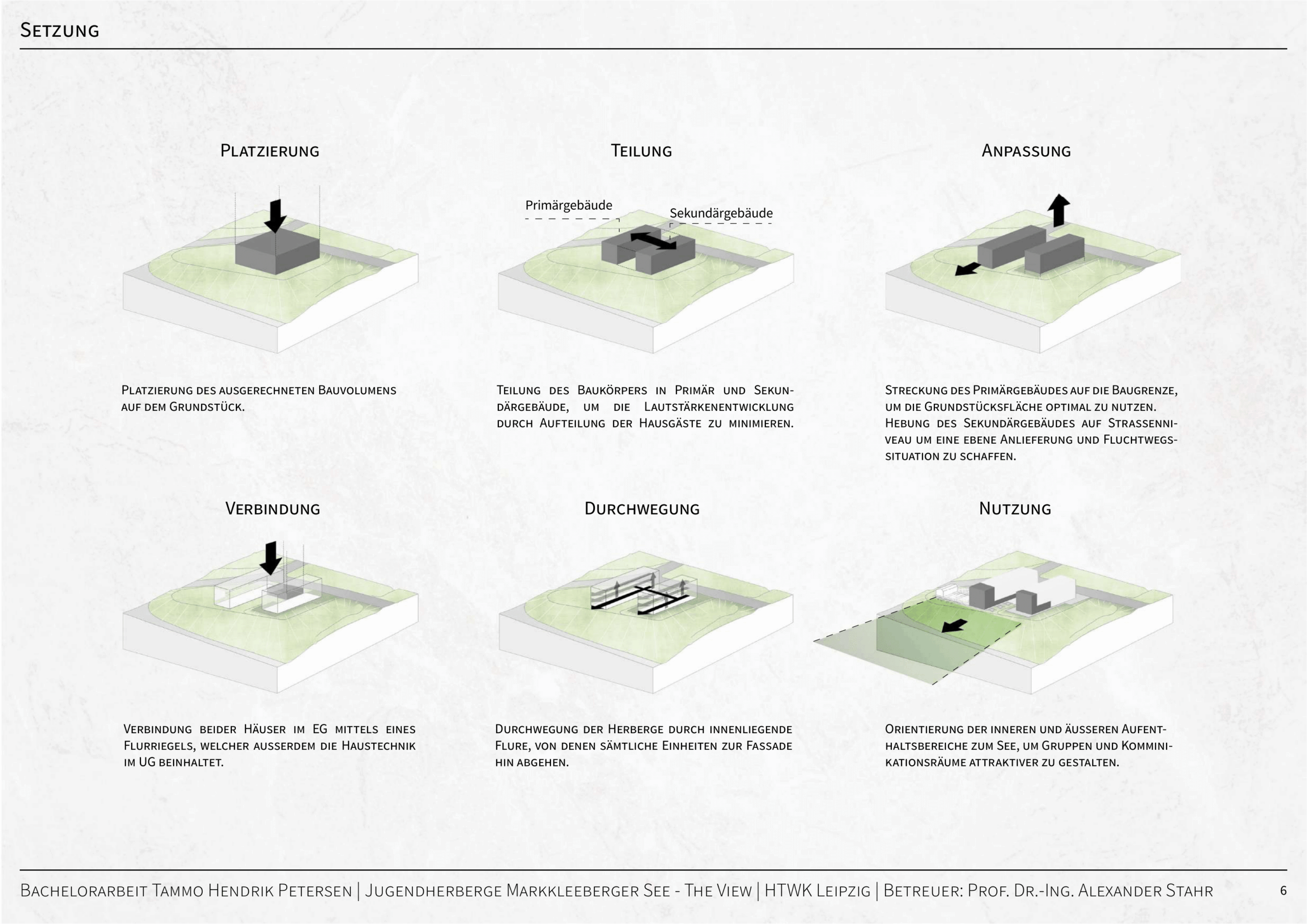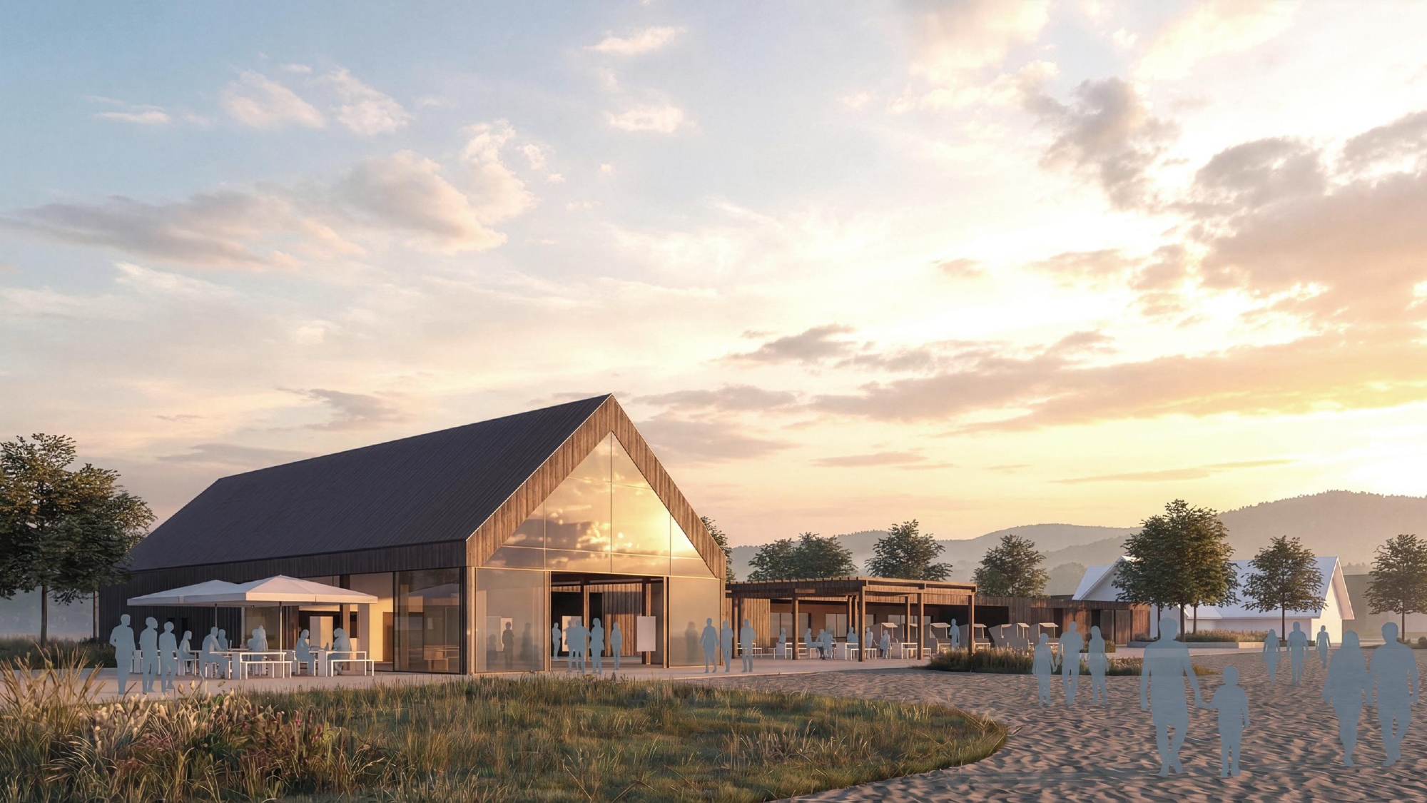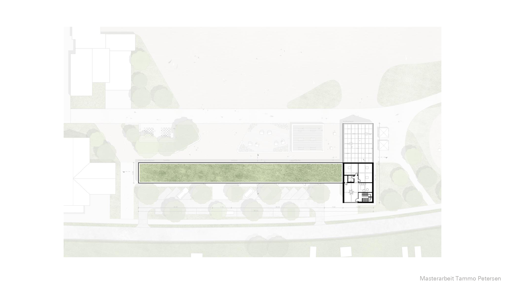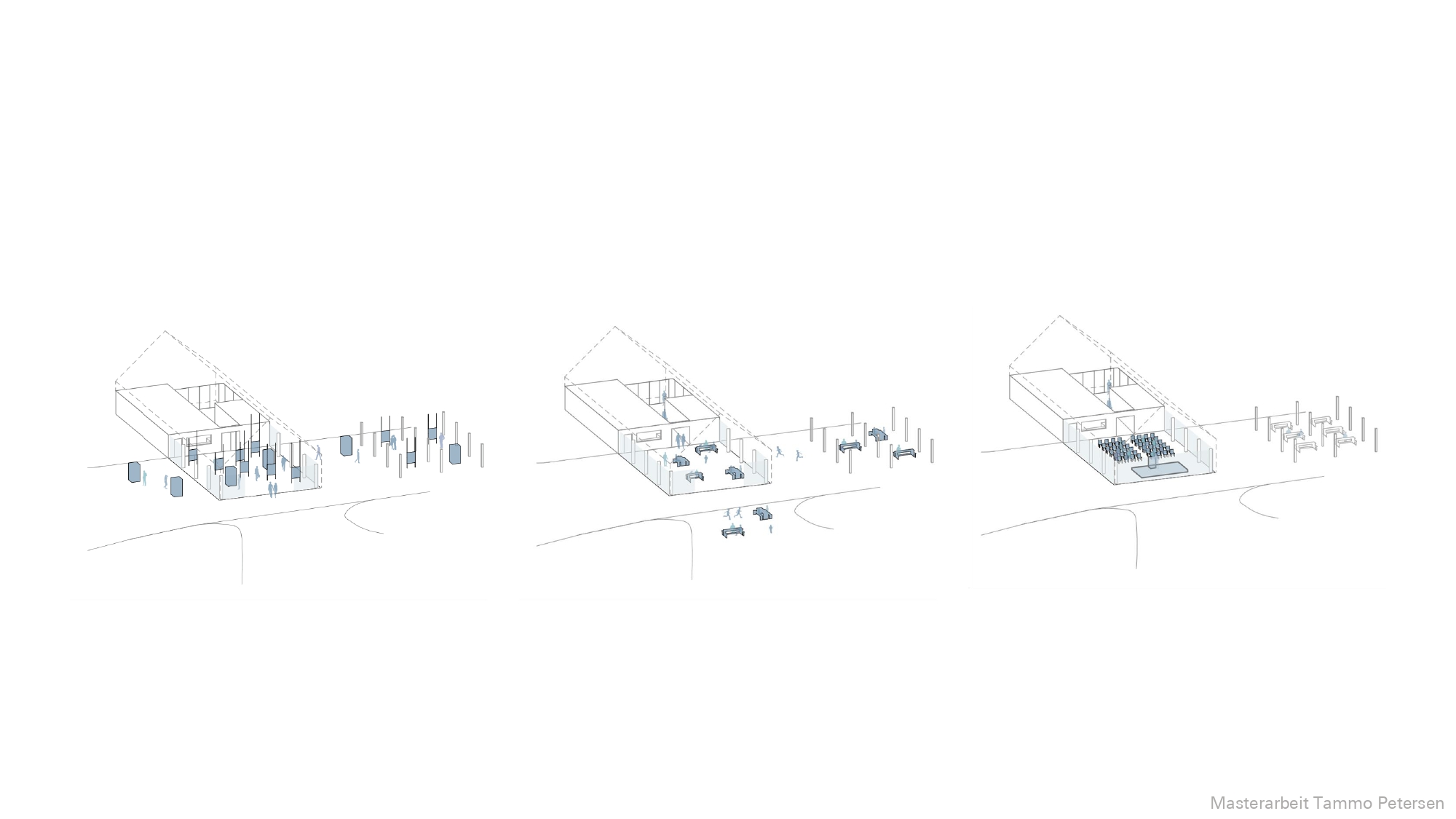 Durch die gezielte Setzung der Baukörper wird ein zentraler Platz zwischen Strand und Straße ausgebildet, der als Ankunfts- und Aufenthaltsort dient. Ergänzende, zurückhaltende Baukörper wie Imbisse und Sanitäranlagen werden integriert, während das Kulturhaus als identitätsstiftender Schwerpunkt einen räumlichen und programmatischen Akzent setzt. So entsteht ein klar strukturierter, robuster Ort, der sowohl saisonal als auch im Alltag funktioniert.