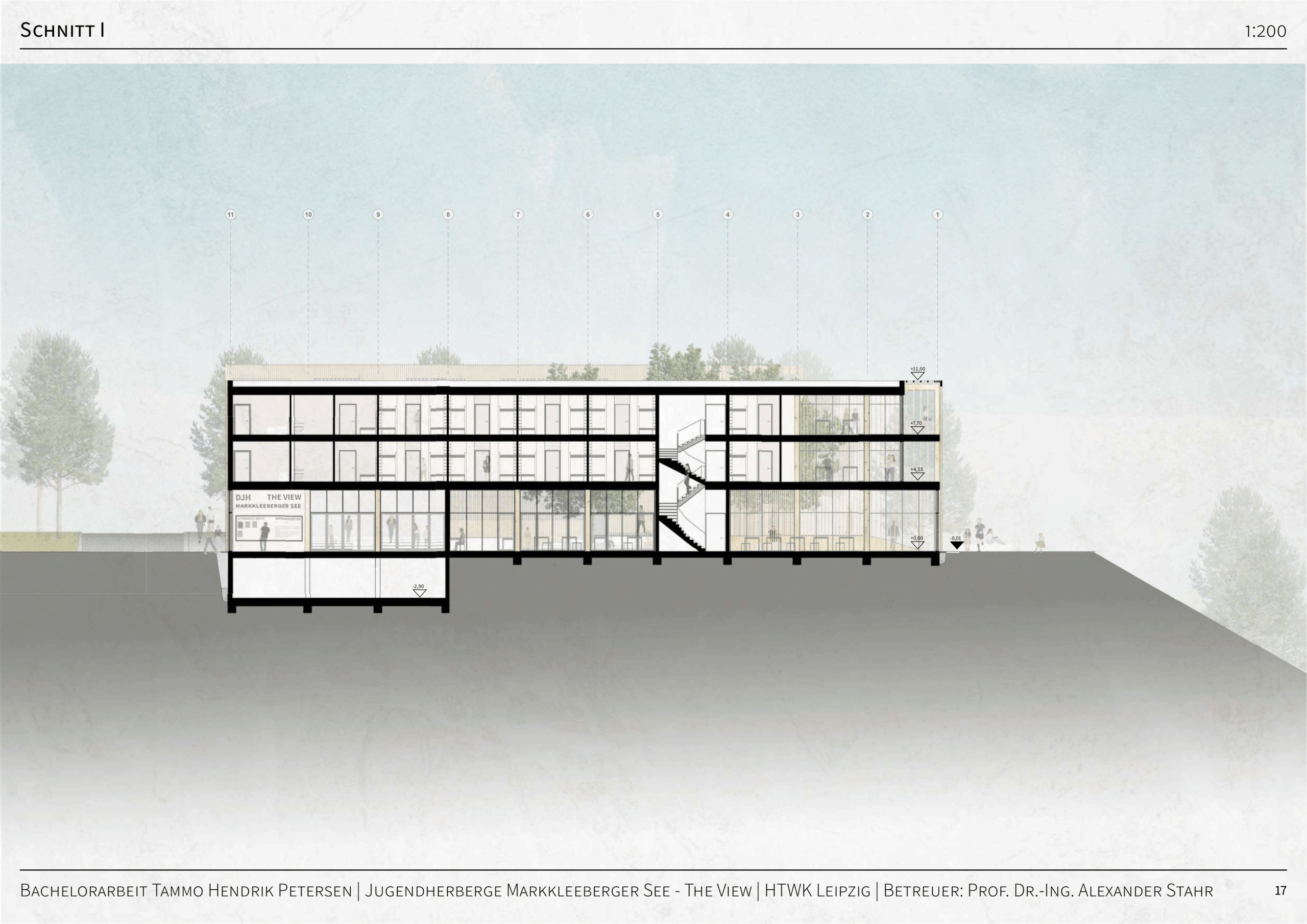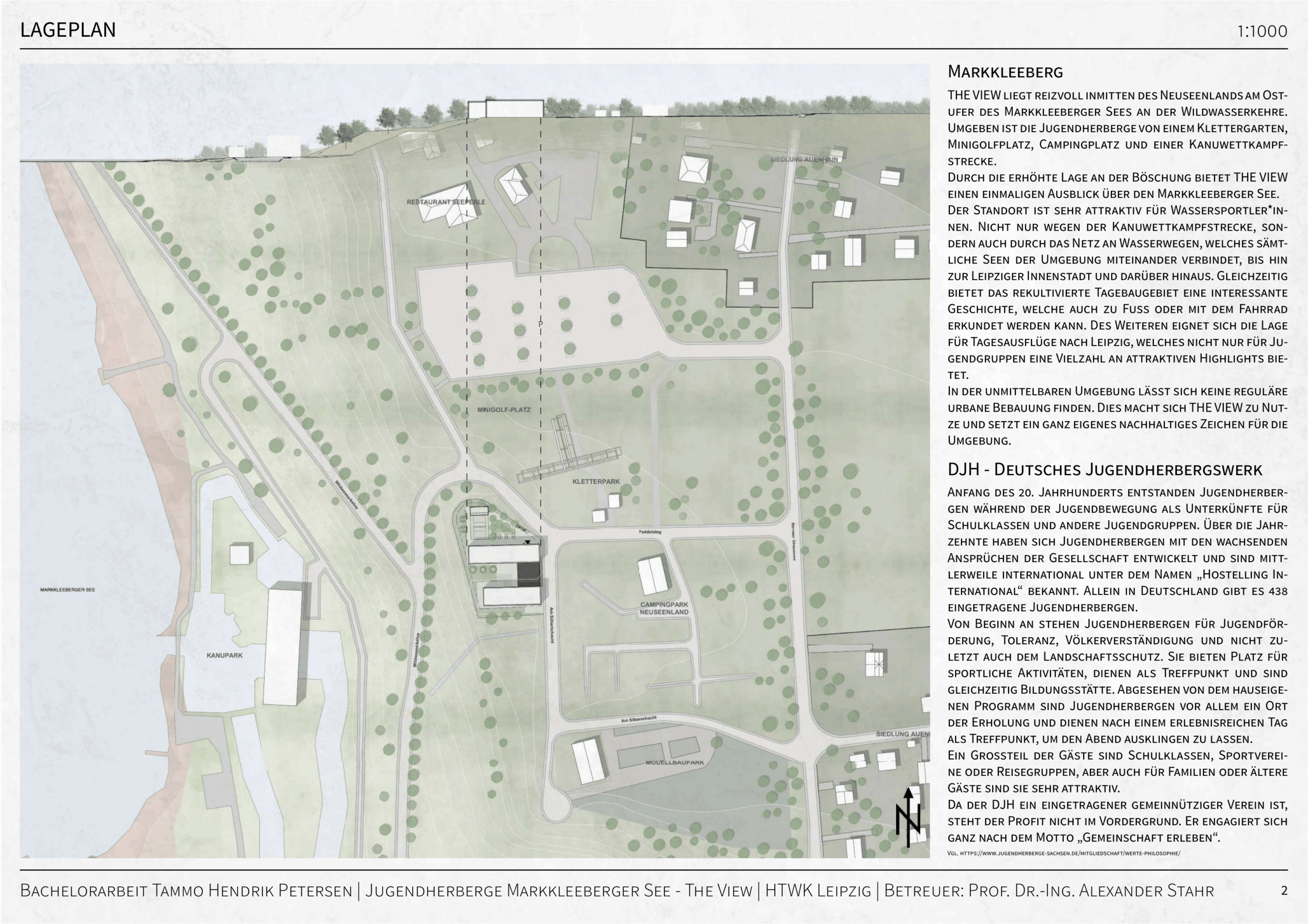 THE VIEW liegt reizvoll inmitten des Neuseenlands am Ostufer des Markkleeberger Sees an der Wildwasserkehre. Umgeben ist die Jugendherberge von einem Klettergarten, Minigolfplatz, Campingplatz und einer Kanuwettkampfstrecke.